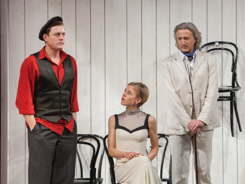 Трактовку пьесы Богомоловым можно назвать достаточно вольной, но это не должно смущать, ведь благодаря внесенным изменениям режиссеру удается решить поставленные перед собой и артистами задачи. Так, например, действие переносится на несколько десятилетий вперед, в первую половину XX века (тогда как у Островского речь идет о 1870-х годах). Меняются согласно задумке смысловые акценты. Перед нами не помещичий, купеческий мир, хорошо известный по пьесам Островского, а новая, некая условная реальность: декорации выдержаны в черном, белом и красном цветах, что, несомненно, может напомнить зрителю традиционные цвета Германской империи; по ходу действия звучат немецкие песенки и марши, как бы уводящие нас из России. Вместе с тем в Германии зритель не оказывается.